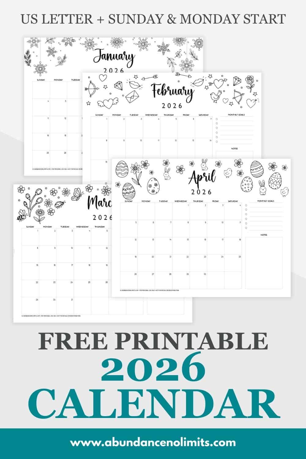 I designed this calendar for people who love pretty things but still want something practical. You get vertical and horizontal layouts, Monday and Sunday start options, and versions with notes and without notes, so you don’t have to “make it work” if it doesn’t fit your planning style. Been there, hated that.